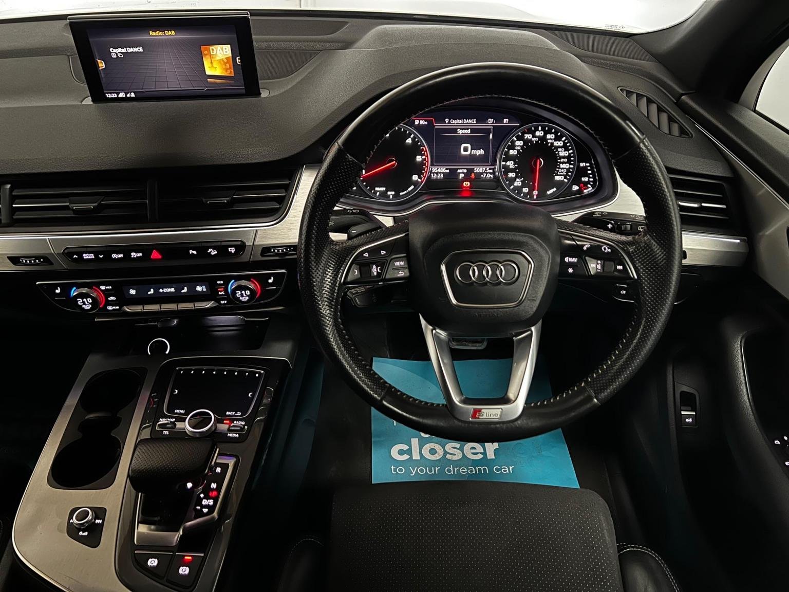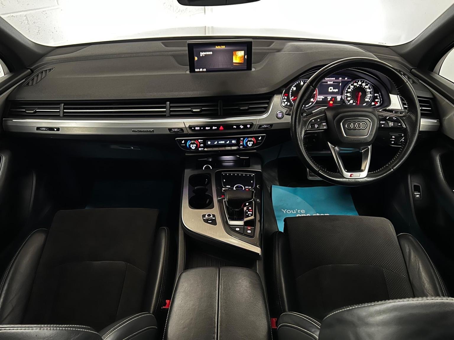 2 x SDXC Card Readers, 20in Alloy Wheels - 5-Parallel Spoke Design, 3D Map Display of Places of Interest and City Models, ABS - Anti-Lock Braking System, AMI - Audi Music Interface, ASR - Anti Slip Regulation, AUX-IN Socket, Acoustic and Visual Parking System - Front, Acoustic and Visual Parking System - Rear, Air Conditioning - Deluxe Automatic at the Rear, Airbags - Curtain, Airbags - Driver, Airbags - Front Passenger, Airbags - Front Side System, All Weather LED Headlights, Aluminium Roof Rails, Amplifier - 6 Channel, Anti Theft Locking Wheel Bolts, Anti-Theft Alarm, Audi Connect - 3 Month Trial, Audi Drive Select, Audi Hill Hold Assist, Audi Parking System Plus, Audi Sound System, Auto-Dimming Rear-View Mirror, Automatic Wipers with Rain Sensor, Autonomous Braking System, Bluetooth Audio Streaming, Body Coloured Bumpers, Body Coloured Door Mirrors, Cloth Headlining in Black, Colour Drivers Information System - DIS, Colour Touchscreen Display - 8.3in, Comfort Front Centre Armrest, Contour Door and Dashboard Lighting, Cruise Control with Speed Limiter, Cup Holders in Rear Armrest x2, DAB Digital Radio, DVD Player, Dashboard - Upper and Lower - Black, Deluxe 4-Zone Automatic Climate Control, Display Screen Colour TFT 7in High Resolution, Door Handles - Body Coloured, Door Handles - Inside Lights, Door Mirrors - Heated-Electrically Adjustable-Folding, Door Mirrors - Kerb View Function, Door Sill Trims with S Line Logo, Dynamic Rear Indicators, Dynamic Suspension, EBD - Electronic Brakeforce Distribution, EDL - Electronic Differential Lock, ESC - Electronic Stabilisation Control, Electric Windows - Front and Rear, Electrically Adjustable 4-Way Lumbar Support, Electrically Adjustable Front Seats, Electromechanical Parking Brake, Entrance Lighting, First Aid Kit, Flash Memory for Music - 10GB, Front Centre Armrest - Adjustable, Front Passenger Airbag Deactivation Switch, Front and Rear Floor Mats, Front and Rear Reading Lights, Glovebox - Illuminated, Head Restraints - Front Adjustable, Headlights - Adaptive, Headlights - Automatic, Headlights - High-Beam Assist, Headlights Washers, Heated Front Seats, Hill Descent Control, ISOFIX Child Seat Preparation for Rear Seats with Top Tether, ISOFIX for Front Passenger Seat, Illuminated Footwell Lighting, Illuminated Vanity Mirrors, Interior Light Package, Keyless Go, LED Daytime Running Lights, LED Rear Lights, Lighting - Tailgate, Luggage Compartment - Lighting, MMI Navigation Plus including MMI Touch, MMI Radio Plus, MMI Search, MMI Touch, Mobile Telephone Preparation - Bluetooth Interface, Outside Temperature Display, Platinum Grey Front Spoiler Lip and Diffuser Insert with Honeycomb Grid in Black, Power Operated Tailgate, Power Steering - Servotronic, Pre-Sense City, Privacy Glass, Rear Centre Armrest, Rear Diffuser - S Line Design, Remote Central Locking, S Line Badges on Front Wings, S Line Body Styling, S Line Bumpers-Side Ventilation Grilles-Side Skirts and Roof Spoiler, S Line Roof Spoiler, Seat Belt Monitoring, Seats - 2nd Row Split - 35-30-35, Seats - 3rd Row Electrically Folding - 50-50, Seats - Dark Silver Stitching, Seats - Front Height Adjustment, Seats - Sports - S Line, Smoking Package, Speakers x10, Speed Limit Display, Stainless Steel Loading Sill Protector, Steering Wheel - 3-spoke S line Multi-function Leather, Steering Wheel - Gear Shift Paddles, Steering Wheel - Height and Reach Adjustable, Steering Wheel - Multi-function, Subwoofer, Tool Kit and Car Jack, Two Cup-Holders in Centre Console, Tyre Pressure Loss Indicator, Tyre Repair Kit, USB Connection x2, Upper Inlays in Brushed Aluminium-Sono and Lower Inlays in Chrome Paint Finish-Slate Grey, Voice Control - Navigation, Warning Triangle, Window Surrounds - Aluminium