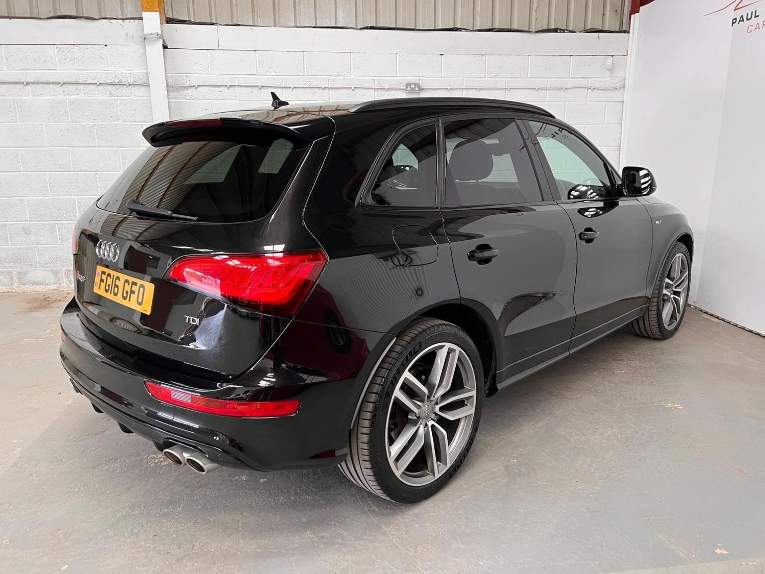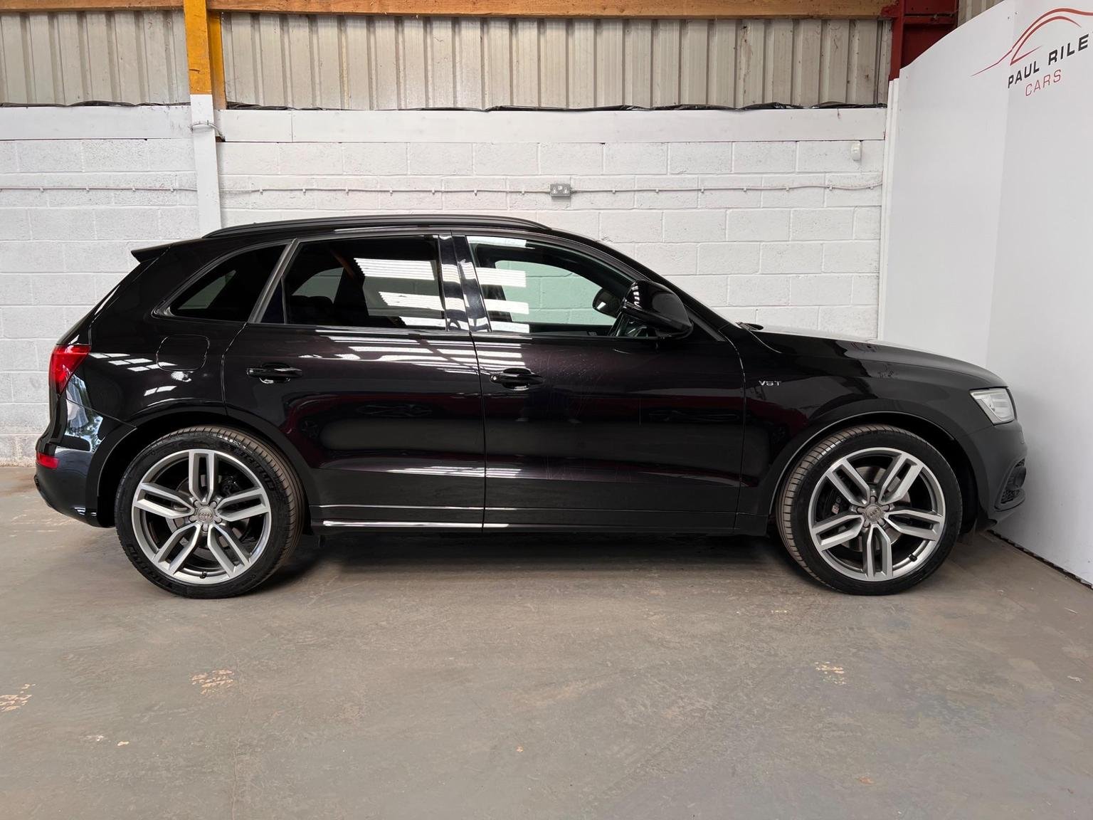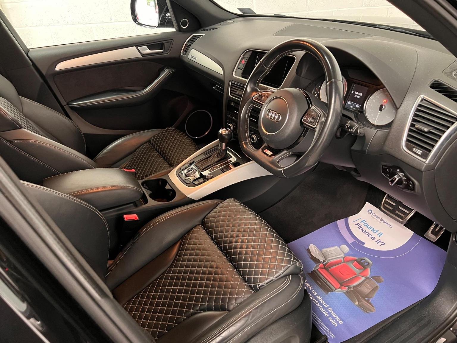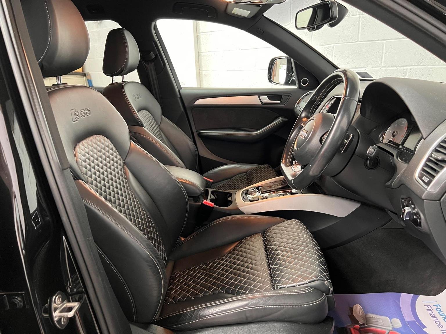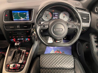 12V Power Socket, 20GB Jukebox for Storing and Managing Music Files - WMA and MP3 Format, 21in Alloy Wheels - 5-Twin-Spoke Star Design in Titanium Look with High Gloss Finish, ABS - Anti-Lock Braking System, AMI - Audi Music Interface, AUX-IN Socket, Acoustic Windscreen, Active Door Reflectors, Air Conditioning - Deluxe Automatic at the Rear, Airbags - Driver, Airbags - Front Passenger, Airbags - Front Side, Alarm - Thatcham Category 1, Aluminium Scuff Plates with SQ5 Logo, Amplifier - 180 Watt, Amplifier - 6 Channel, Anti Theft Locking Wheel Bolts, Audi Parking System Plus, Audi Sound System, Auto-Dimming Rear-View Mirror, Automatic Headlight Range Adjustment, Automatic Wipers with Rain Sensor, Black Roof Rails, Black Styling Package, Body Coloured Bumpers, Brake Calipers - Black with S Logo, Car Jack, Cloth Headlining in Black, Colour Drivers Information System - DIS, Concert Radio - MP3-CD Player, Cruise Control, Cup Holders - Centre Console, DAB Digital Radio, Deluxe 3-Zone Climate Control, Display Screen Colour - 7in TFT High Resolution and Split Screen Mode for Route Information, Door Handles - Chrome with Black Elements, Door Mirrors - Black Housing, Door Mirrors - Electrically Adjustable and Heated, Door or Boot Open Warning, Double-glazed Side and Rear Windows, Double-glazed Windscreen, Dynamic Route Guidance - TMC, EBD - Electronic Brakeforce Distribution, ESP - Electronic Stability Programme, Electric Windows - Front and Rear, Electrically Adjustable 4-Way Lumbar Support, Electromechanical Parking Brake, Electromechanical Power Steering, Entrance Lights, European Navigation Data, Exhaust Tailpipe - Two Oval on Left and Right Side in Chrome Rolled Finish, First Aid Kit, Fog Lights - High Gloss Black Surrounds, Front Centre Armrest, Front Fog Lights, Front Footwell Lighting, Front Passenger Airbag Deactivation Switch, Front and Rear Floor Mats, Glovebox - Illuminated, Hard Drive - 40GB, Headlight Washers, Headlights - Coming-Leaving Home Function, Headlights - Light Sensor, Headlights - Xenon, Hill Descent Control, ISOFIX Child Seat Mounting for Front Passenger, ISOFIX Child Seat Preparation for Rear Seats with Top Tether, Illuminated Vanity Mirrors, Inlays - Matt Brushed Aluminium, Interior Light Package, Interior Lighting - Vents and Internal Door Controls, LED Daytime Running Lights, LED Rear Lights, Leather Package - Door Armrests, MMI Navigation Plus, Misfuelling Inhibition, Mobile Telephone Preparation - Bluetooth Interface, Number Plate - High Gloss Black Surrounds, Outside Temperature Display, Pollen Filter, Power Operated Tailgate, Privacy Glass, Quattro Sports Differential, Radiator Grille - Matt Black, Radiator Grille Frame - High Gloss Black, Rear Bench Seat Plus, Rear Parking Sensors, Rear Reading Lights, Rear Spoiler - Black, Remote Boot Release, Remote Central Locking, Rest Recommendation System, Roof Bars and Storage Bag, S Design Body Styling, S Instrument Dials, SD Card Reader x2, Seats - Front Electric Adjustment, Seats - Front with SQ5 Embossing, Seats - Rear Split - Independent Adjustment, Seats - Split Folding Rear - 60-40, Seats - Sports, Single CD-DVD Player, Speakers x10, Steering Column - Rake and Reach Adjustment, Steering Wheel - 3-Spoke S Sports Leather with Contrast Stitching, Steering Wheel - Contrast Stitching, Steering Wheel - Gear Shift Paddles, Steering Wheel - Multi-function, Steering Wheel - Sports, Suspension - S Sports, TP Memo - Automatically Saves Traffic News, Tailgate - Lid Closing Assistance Unit, Tailgate - Programmable Angle for the Luggage Compartment Lid, Technology Package, Through-Load Facility, Tool Kit and Car Jack, Towing Equipment - Preparation, Traction Control, Tyre Pressure Loss Indicator, Tyre Repair Kit, Warning Triangle, Window Surrounds - Black