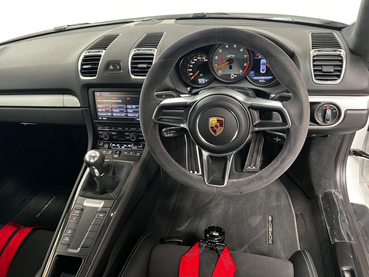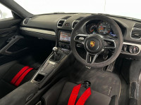 Remote Central Locking, Roof Lining in Alcantara, Seats - Adjustable Backrests - Electric, Seats - Height Adjustment and Manual Fore-Aft Lengthwise Adjustment, Single CD Drive Supporting MP3 Audio Playback, Speakers x4, Spoiler Lip in Black, Sport Mode Button, Sport Plus Button, Sports Exhaust System, Sports Seats Plus - Electrical 2 Way, Steering Wheel - Alcantara, Steering Wheel - GT4 Sports, Steering Wheel - Manual Height and Fore-Aft Adjustment, Steplessly Adjustable Fan with Air Recirculation and Defroster Functions, Storage Compartment in Each Door, Tailights Tinted Black - LED, Third Brake Light - LED, Titanium Coloured Grilles, Titanium Coloured Rev Counter with GT4 Logo, Touchscreen - Display Screen, Tyre Pressure Monitoring - TPM, Tyre Sealing Compound and Electric Air Compressor, Universal Audio Interface - AUX, Vanity Mirror Lighting - LED, Windscreen Washer System with Two Wiper Speeds and Heated Washer Jets, Windscreen with Grey Top-Tint, 12-Volt Socket in Passenger Footwell, 12v Socket - Storage Bin Centre Console, 12v Socket Outlet in Glove Compartment, 2 x 25 Watt Output, 20in Alloy Wheels - GT4 Platinum, 7in Colour Display, ABD - Automatic Brake Differential, ABS - Anti-lock Brake System, ASR - Anti Slip Regulation, Active Carbon Filter, Air Conditioning, Airbag - Driver, Airbag - Head, Airbag - Passenger, Airbag - Thorax in Seat Side Bolsters, Alarm System, Alcantara Lid of Centre Console Storage Box, Aluminium Brushed Centre Console Trim, Anti-roll Bars, Armrest on Drivers Door - Alcantara, Armrest on Passengers Door - Alcantara, Automatic Coming Home Lights, Automatic Hill-Hold, Brake Assistant, Brake Calipers - Red, CDR Audio System, Clothes Hooks on Seat Backrests, Dashboard Trim - Brushed Aluminium, Daytime Running Lights - LED, Door Entry Sill Inserts and Centre Console Badge with GT4 Logo, Door Mirrors - Electrically Adjustable and Heated, Door Mirrors - SportDesign, Driving Light Assistant, EDTC - Engine Drag Torque Control, Electric Parking Brake, Electric Windows - Lifts with One Touch Operation, Electronic Immobiliser - Transponder System, Fixed Rear Spoiler with Integrated Trailing Edge - Gurney Flap, Footwell Illumination - LED, Front Apron with Integrated Air Inlets, GT4 Rear Wing - Body Coloured, Gear Indicator in Rev Counter, Gear Selector - Alcantara, Glove Compartment - Lockable, Glove Compartment Illumination, Green Tinted Heat-Insulating Glass, Headlights - Automatic Dynamic Headlight Levelling, Headrests with Stitched GT4 Logo in Platinum Grey, Heated Windscreen Washer Jets, Individual Cupholders Integrated in Dashboard Trip Strip, Instrument Cluster Dials in Black with Yellow Pointers, Instrument Cluster with Central Rev Counter and 4.6in TFT VGA Display, Integrated Amplifier, Integrated Cluster of Three Round Instruments, Interior Lighting with Variable Dimming, LED Reading Lights, Lashing Points in the Rear of the Luggage Compartment x8, MSR - Motor Slip Regulation, On-Board Computer, PASM - Porsche Active Suspension Management, PORSCHE Logotype and Model Designation on Tailgate in Black, PSM - Porsche Stability Management, Pad-Wear Sensors on Each Brake Pad, Passenger Footwell Storage Net, Porsche Side Impact Protection - POSIP, Porsche and GT4 Logo on Rear Apron in Black, Power Assisted Steering with Variable Steering Ratio, Power Release Buttons for Front-Rear Luggage Compartments Lids, Radio with Twin Tuner, Rear Apron with Bottom Part in Diffuser Look with Fins, Rear Side Panel Air Intakes with Side Blades and Embossed GT4 Logo